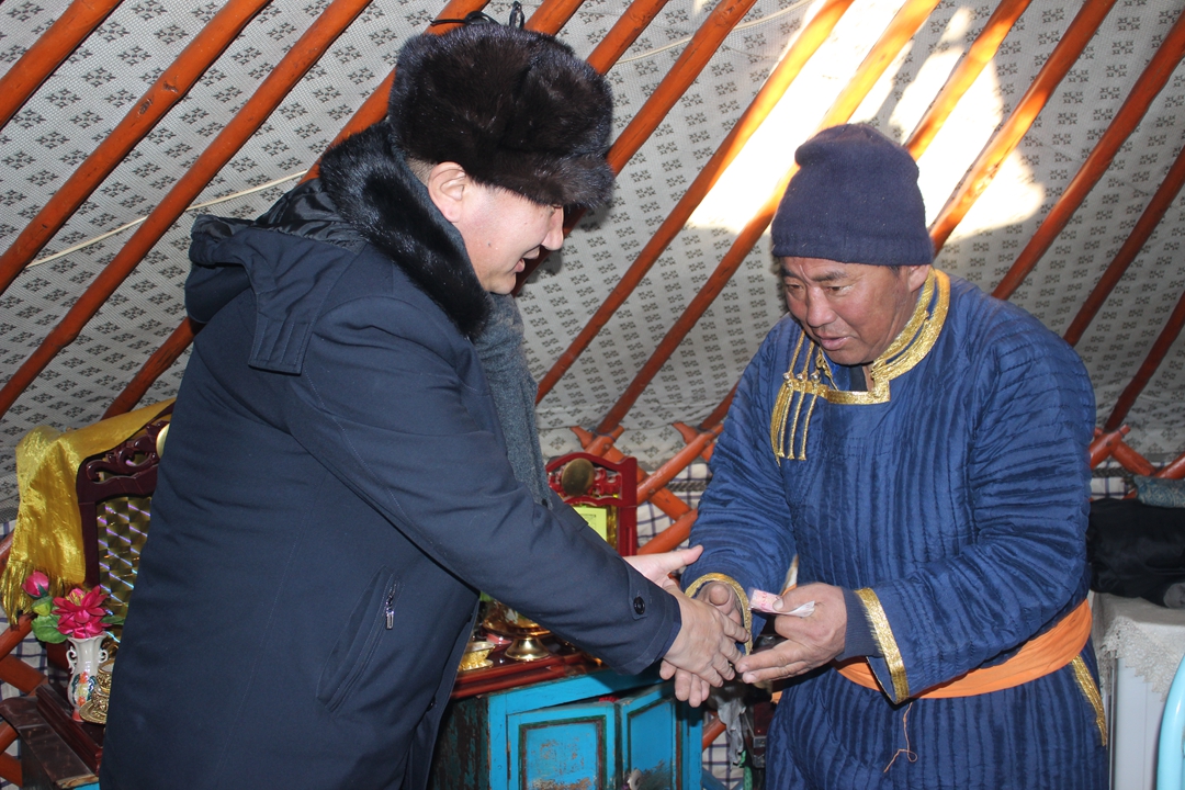 2020年元旦前夕,新左旗检察院党组书记、检察长图布信、党组成员、副检察长吉日木图一行,深入我院帮扶的吉布胡郎图苏木乌尔逊嘎查,向被帮扶的贫困户巴图巴雅尔、建档立卡户斯仁道尔吉以及贫困户阿迪雅苏荣送上检察机关的慰问和关怀。