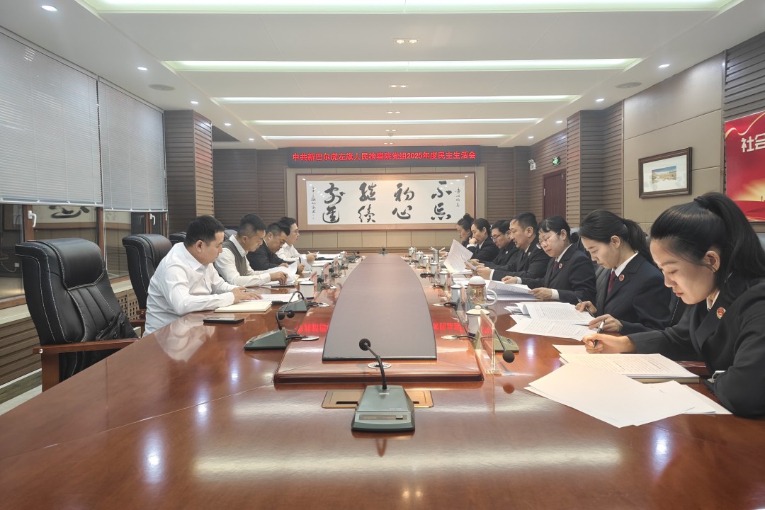 2月4日下午,新巴尔虎左旗检察院党组召开2025年度民主生活会。新巴尔虎左旗委第二督导组到会指导,旗委政法委副书记呼伦列席会议。旗检察院党组书记、检察长图布信主持会议,全体党组及班子成员参会。