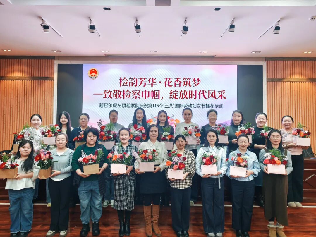 阳春三月,春风拂面。在第116个“三八”国际劳动妇女节来临之际,为丰富女职工精神文化生活,展现新时代检察巾帼风采,新巴尔虎左旗检察院举办“检韵芳华 花香筑梦”主题插花活动,全体女职工欢聚一堂,以花寄情、共庆佳节。