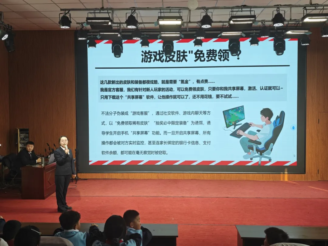在阿木古郎第一小学,检察人员为五年级学生带来网络安全专题法治课。检察人员结合真实案例,用贴近孩子的语言,重点讲解了网络游戏充值、网络兼职陷阱、隔空猥亵等针对未成年人的高发风险,详细拆解诈骗套路、隐蔽侵害方式,提醒同学们不轻信陌生信息、不泄露个人隐私、不随意点击不明链接,遇到可疑情况及时告诉家长和老师,切实提高网络安全意识和自我保护能力。