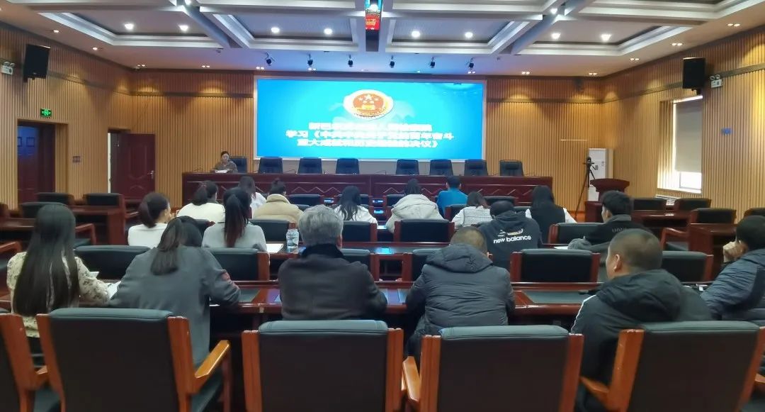 我院将切实把学习贯彻党的十九届六中全会精神作为重大政治任务,全体干警要原原本本深入学,不断在学懂弄通做实上下功夫,真正做到内化于心,外化于行。把全会精神融入检察履职,以高水平的监督办案,服务保障经济社会高质量发展,不断更新司法理念提升办案质效,践行以人民为中心的发展思想,在新时代新征程上展现新气象新作为。