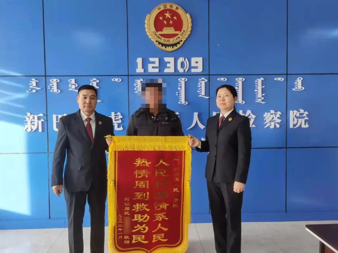 2022年1月7日,正值寒冬腊月,新巴尔虎左旗人民检察院收到了被救助人那某某赠送的写有“热情周到救助为民,人民检察情系人民”的锦旗。