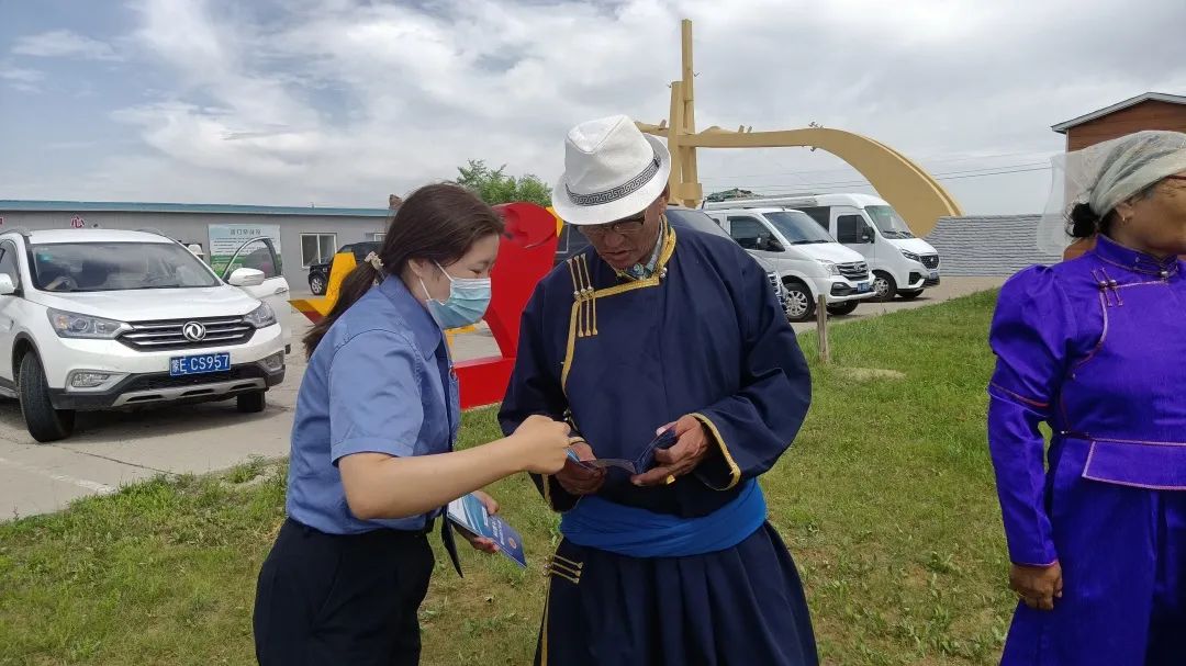 7月4日,新左旗检察院参加了新巴尔虎左旗诺门罕战役遗址陈列馆开馆仪式。仪式结束后,检察干警开展了养老诈骗普法活动,向现场群众、游客讲解防范养老诈骗法律知识。