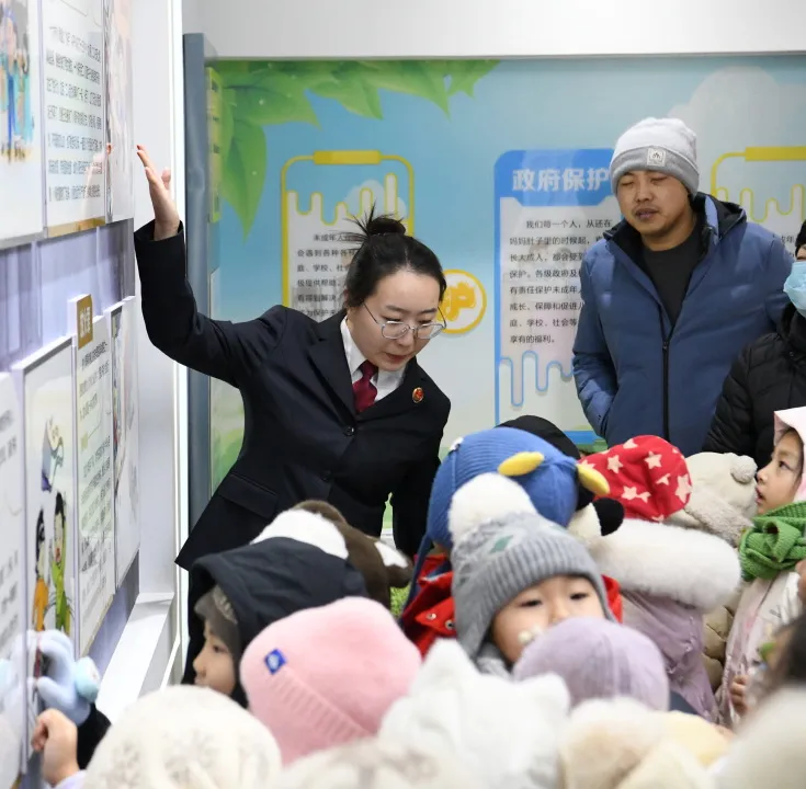 参观过程中,小朋友们在小骏马(阿吉奈)未检工作室讲解员阿鲁斯的引导下,认真聆听法治小故事,积极参与互动体验,在轻松愉悦的氛围中深刻领悟法治对成长的重要意义,逐步培养规则意识和自我保护能力。