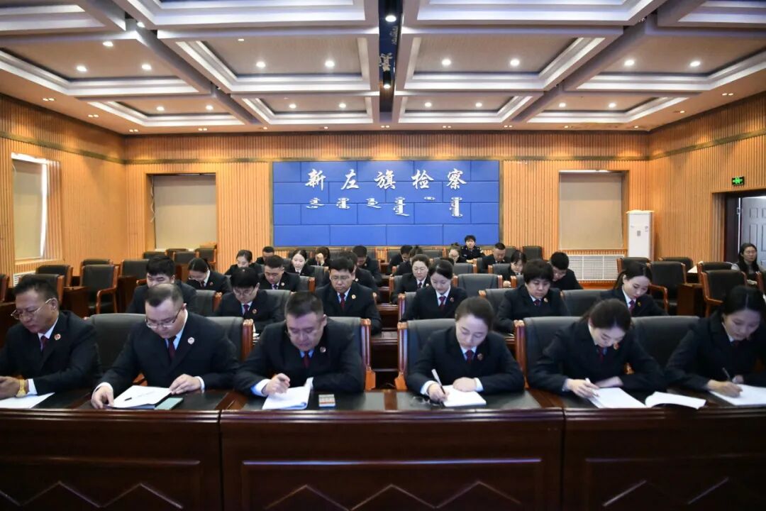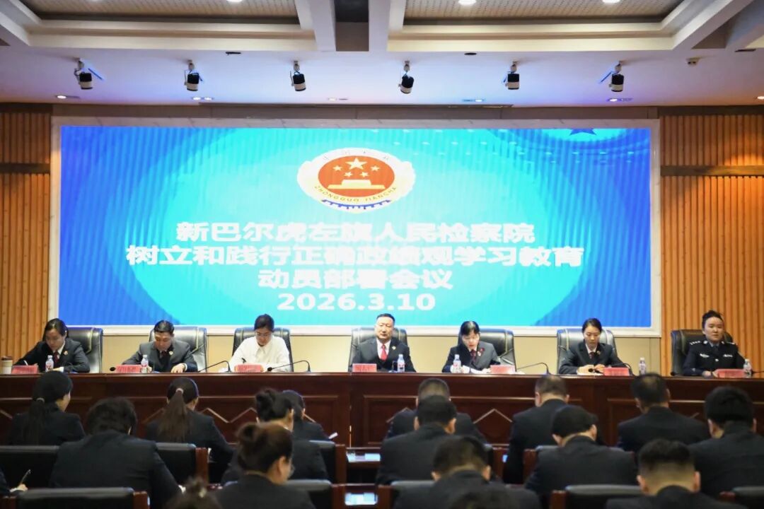 3月10日上午,新巴尔虎左旗检察院召开树立和践行正确政绩观学习教育动员部署会议,深入学习贯彻习近平总书记关于树立和践行正确政绩观的重要讲话和重要指示精神,传达学习《关于在全党开展树立和践行正确政绩观学习教育的通知》和中央党的建设工作领导小组会议精神,自治区、呼伦贝尔市委和旗委部署开展学习教育相关会议精神,研究部署树立和践行正确政绩观学习教育工作。院党组书记、检察长图布信出席会议并讲话,旗纪委监委派驻纪检监察组组长单达拉呼应邀出席会议,党组副书记、副检察长高莹主持,全体检察人员参会。